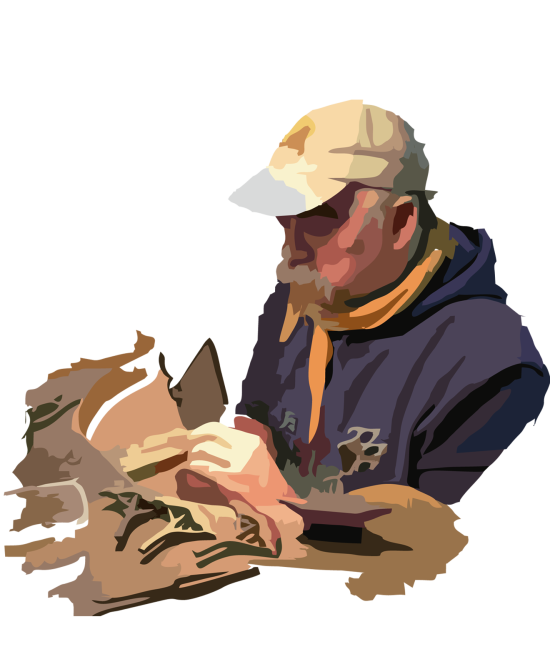 Sein Thema ist die Natur. Er ist ständig auf der Suche nach etwas Neuem, nach neuem, ungewöhnlichen Material und unkonventionellen Verarbeitungsmethoden, die er seinen Ideen entsprechend zusammenstellt.