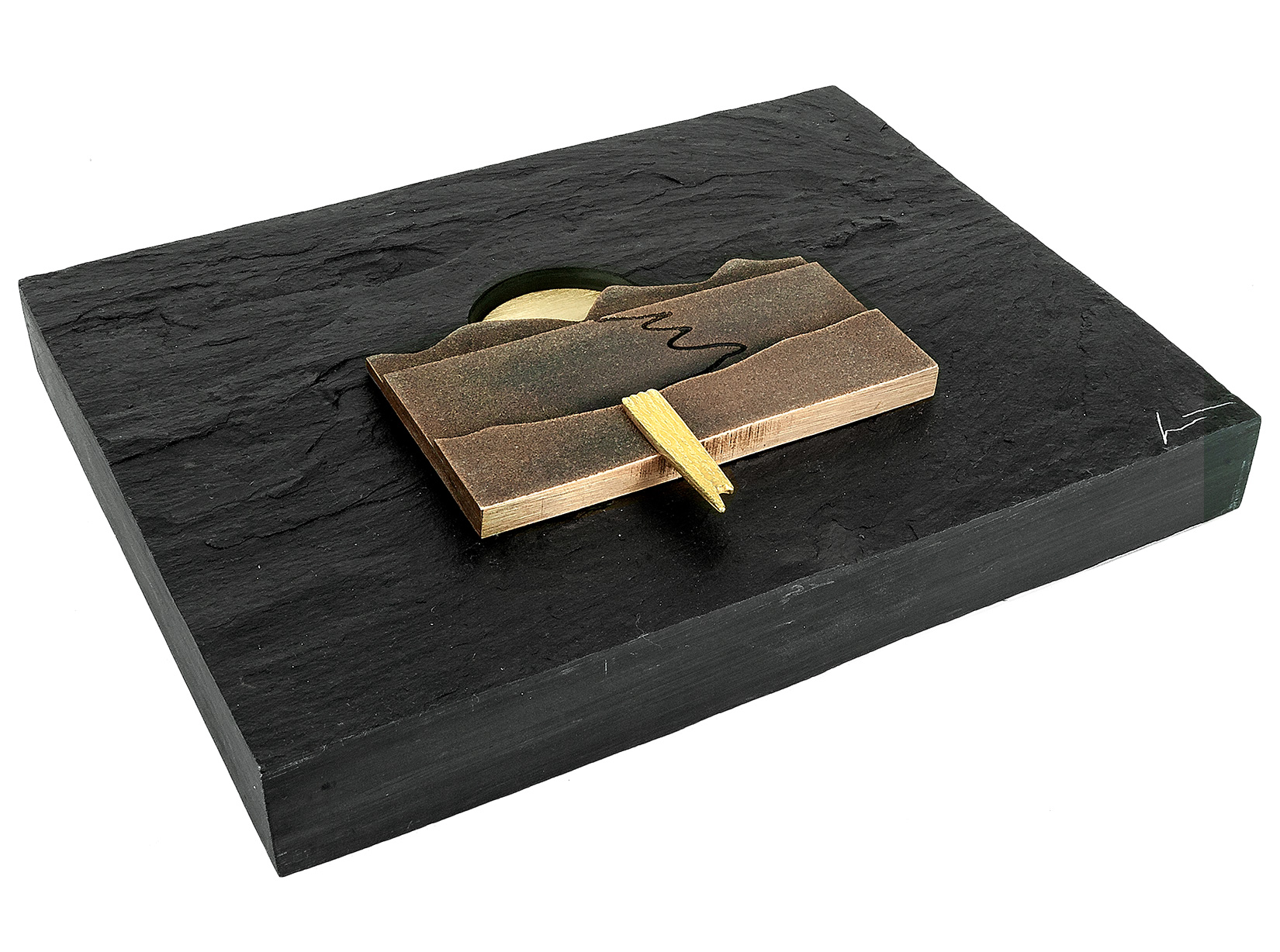 Wandobjekt aus Naturschiefer, Bronze und Messing