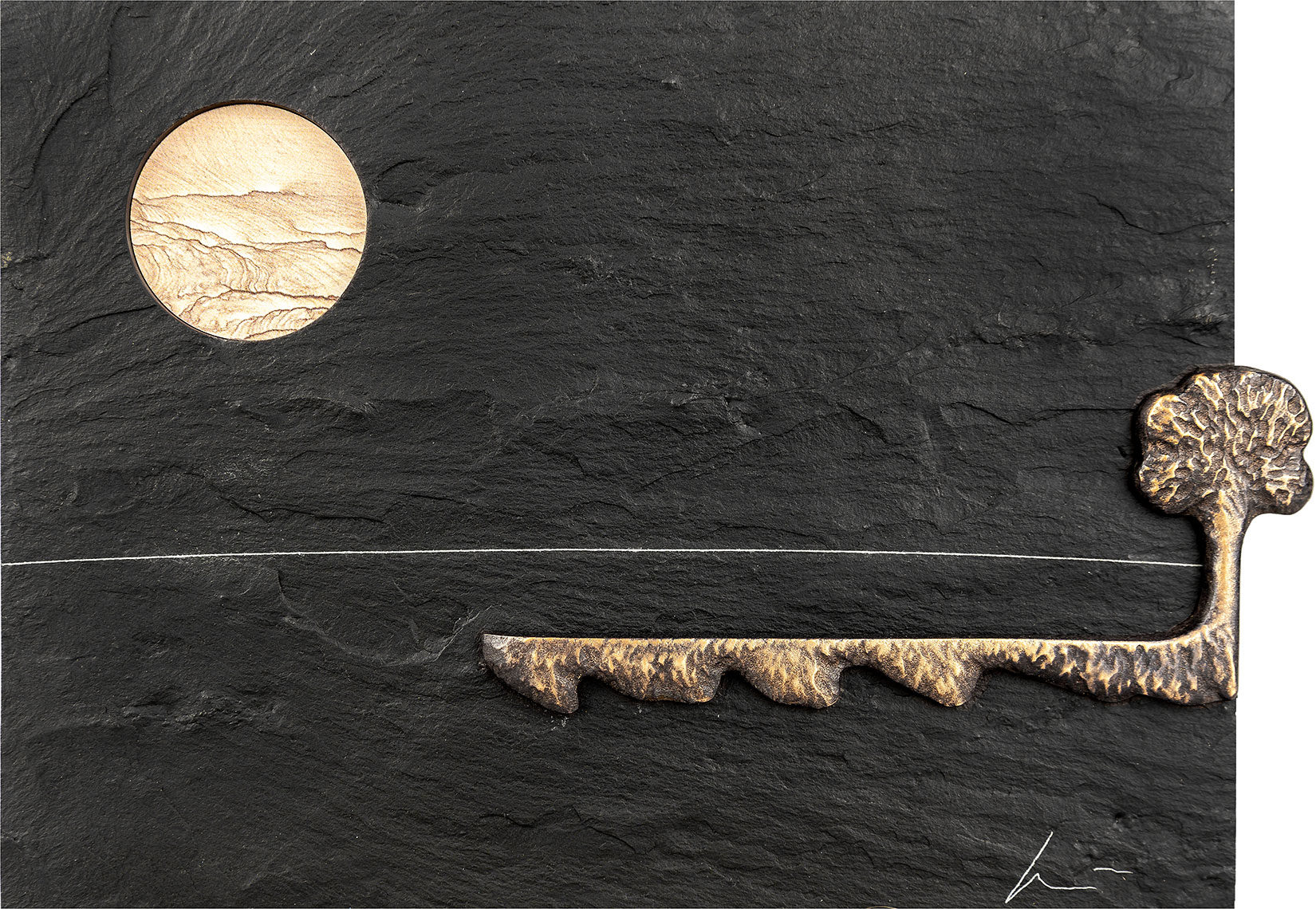 Wandobjekt aus Naturschiefer, Bronze und Messing
